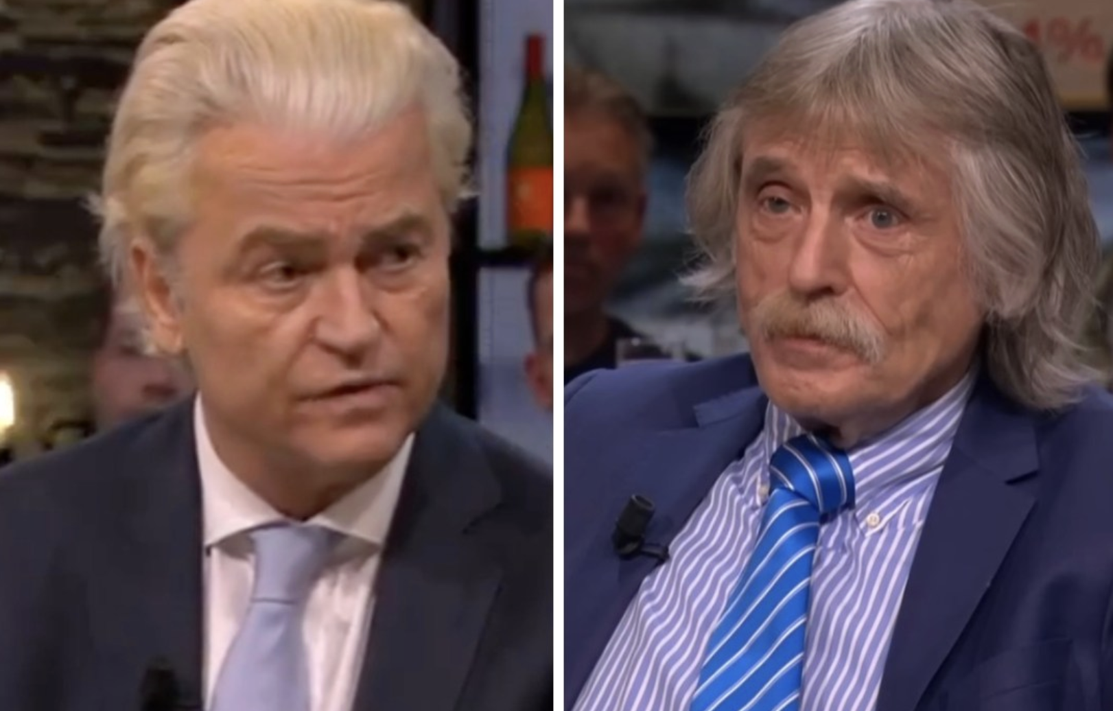 Toen het gesprek op politiek inhoud overging, mengde Johan Derksen zich nadrukkelijk in het debat. Hoewel hij Wilders complimenteerde met zijn vastberadenheid, was zijn oordeel over de PVV-ministers minder mild.